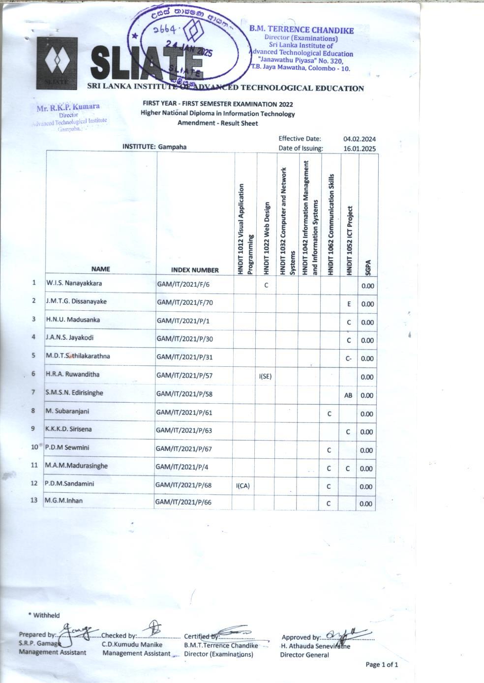 | 2022 | HNDIT | 2nd Year | 1st Semester | Amended Result HNDIT 2nd Year 1st Semester 2022 | View | |
